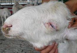 該病由傳染性膿皰病毒(又稱羊口瘡病毒)引起的,羔羊多群發(fā),特征為口唇處皮膚和粘膜形成丘疹,膿皰、潰瘍和結(jié)成疣狀厚痂。